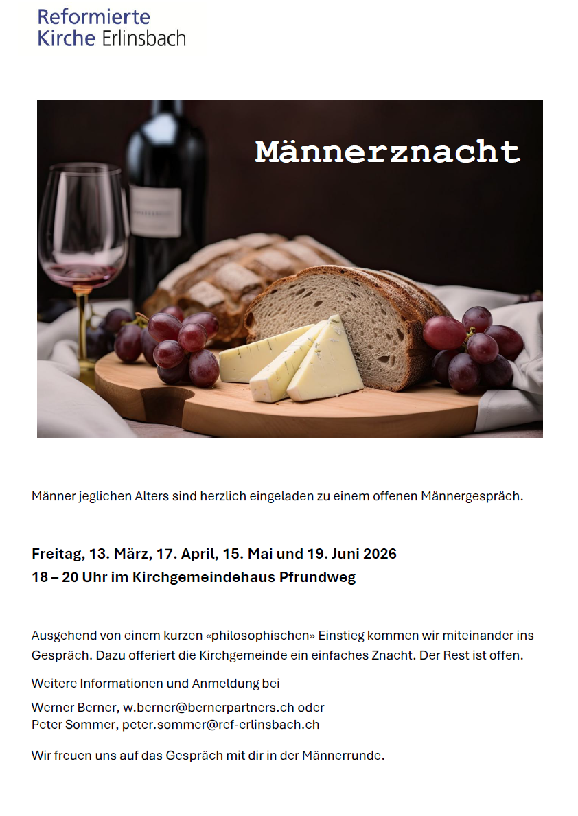 Die Treffen finden jeweils am Freitag von 18 - 20 Uhr im Kirchgemeindehaus Pfrundweg statt.