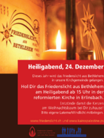 An Heiligabend steht das Friedenslicht ab 15 Uhr bei uns in der Kirche für Sie bereit zum Mitnehmen.